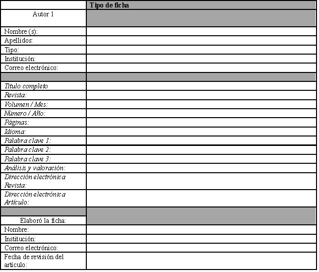 Las tablas simples serán creadas directamente en el software de procesamiento de textos (Insertar>Cuadro). Las tablas complejas o de gran tamaño pueden ser proporcionadas por separado en forma de hoja de cálculo anexa.